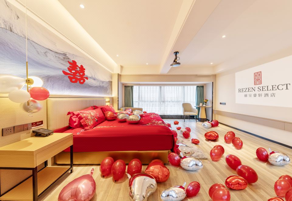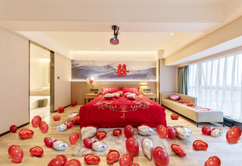 丽轩·温馨主题婚房(毗邻万达+高级衞浴+mini小冰箱)